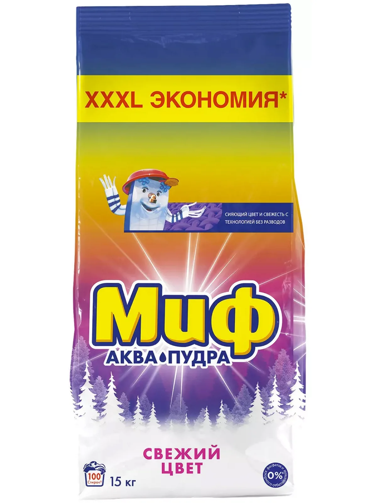 Стиральный порошок Миф Аквапудра растворяется едва коснувшись воды, и моментально активируется: удаляет даже трудновыводимые пятна и придает одежде сияющую чистоту.