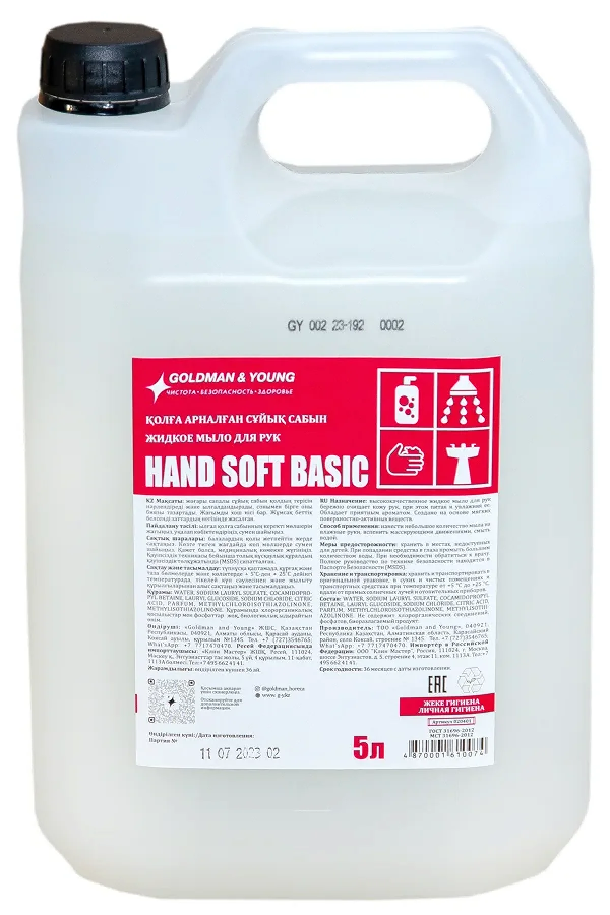 HAND SOFT BASIC Жидкое крем - мыло 5 л