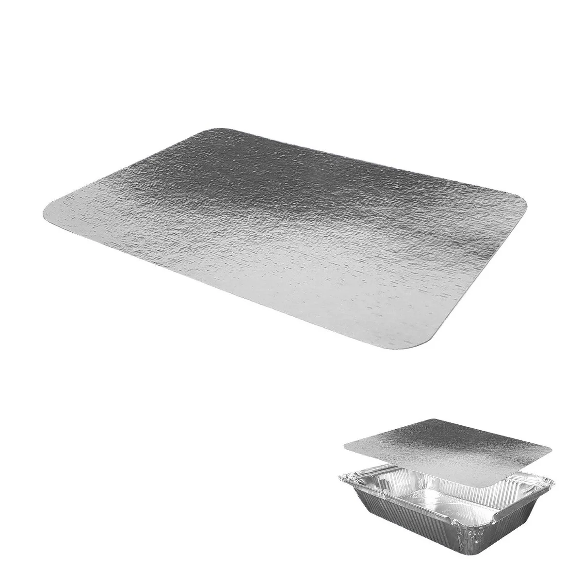 Металлизированные крышки на картонной основе специально созданы для алюминиевых форм с L-краем. За счёт плотного прилегания к форме и отражающих свойств алюминиевого слоя данные крышки помогают сохранить свежесть и продлить температурный режим продукта. При использовании крышек контейнеры можно ставить друг на друга для удобства хранения и транспортировки.