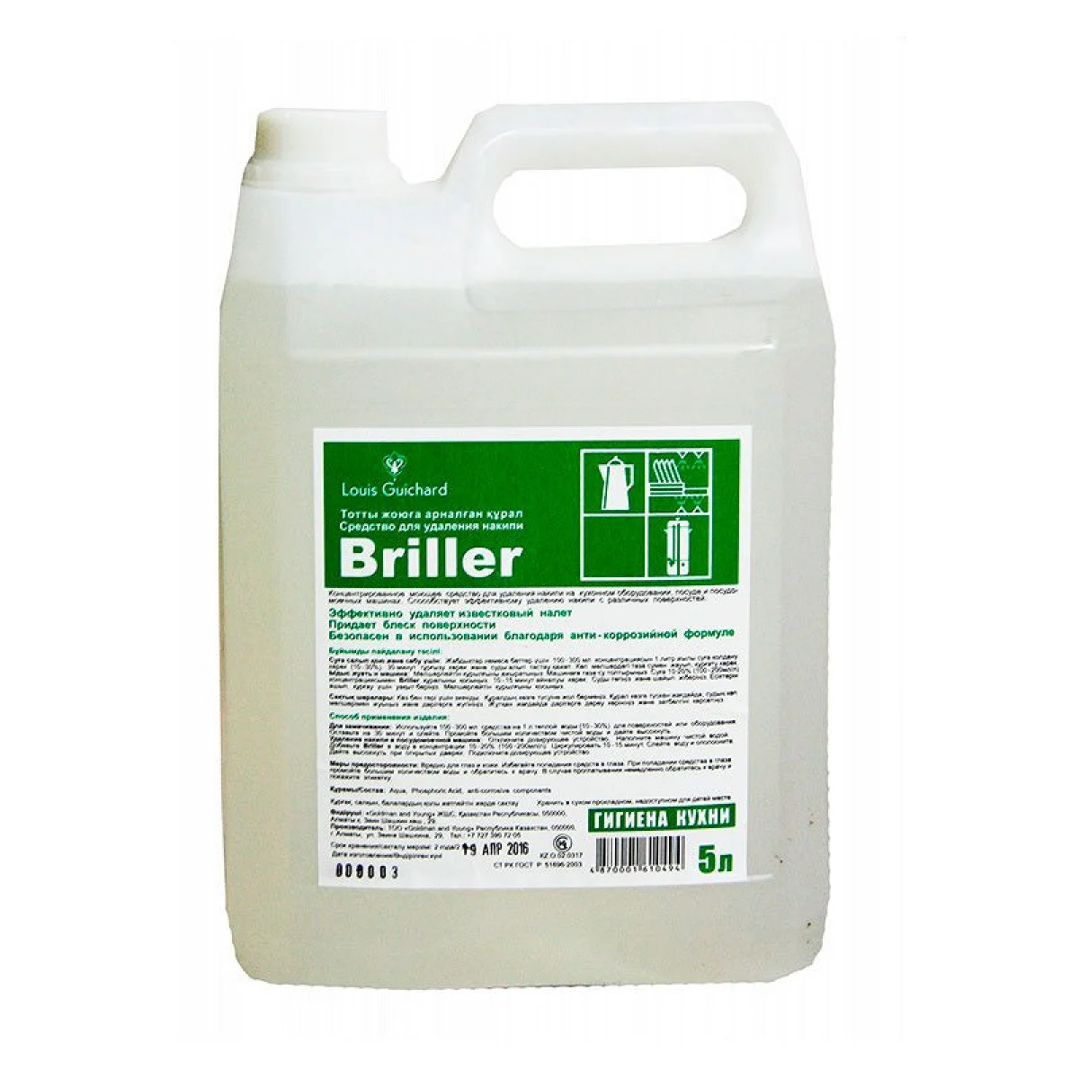 Концентрированное моющее средство для удаления накипи на кухонном оборудовании, посуде и в посудомоечных машинах. Способствует эффективному удалению накипи с различных поверхностей.